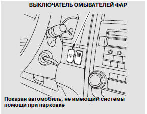 Для того чтобы эта функция работала, фары должны быть включены. Кроме того, омыватель фар включается автоматически при первом включении омывателя ветрового стекла, после того, как ключ зажигания был повернут в положение ON (II).